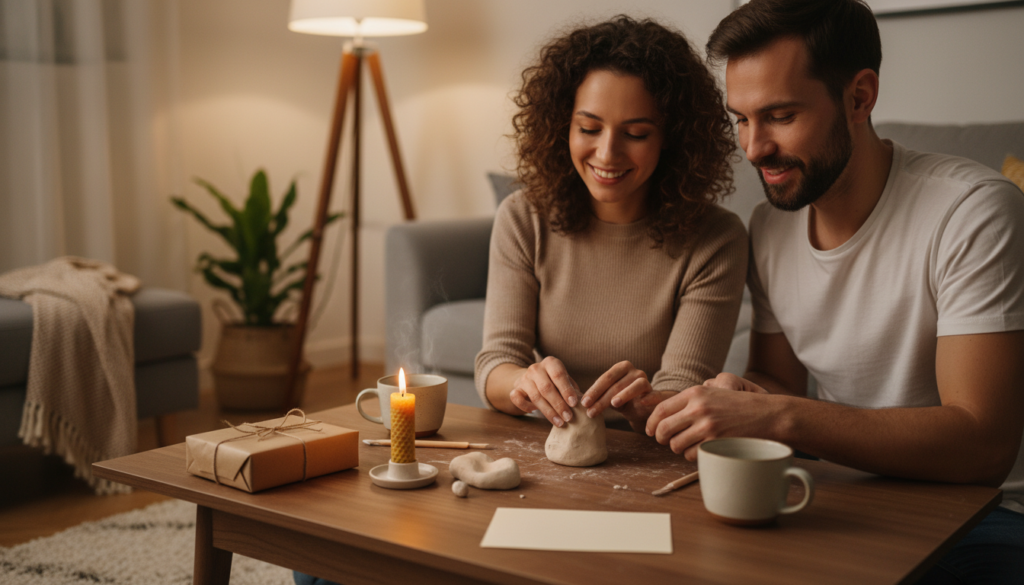 In a Valentine’s context, working with clay together often dissolves formality. Hands get dirty. Shapes collapse and re-emerge. Laughter becomes part of the process. The emphasis shifts from doing something well to doing something together.